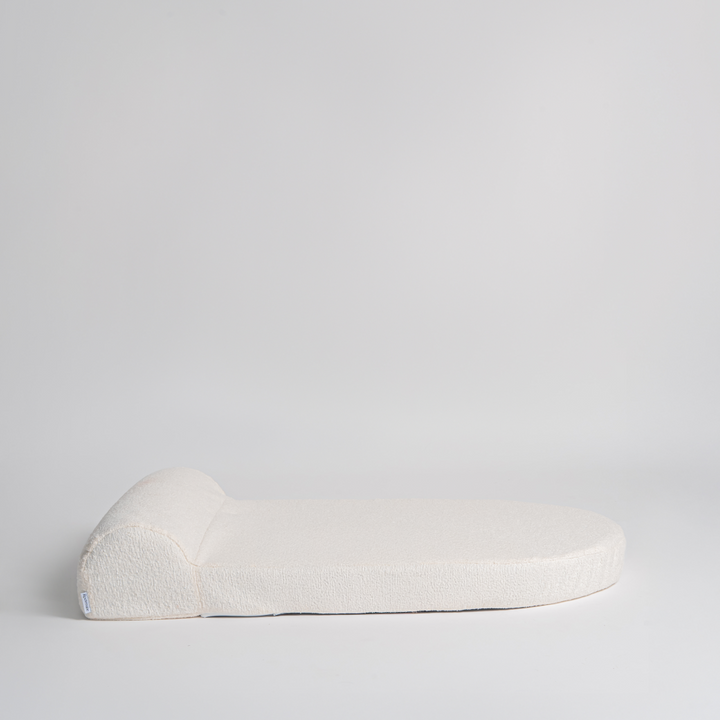 Su funda exterior, hecha con nuestra icónica tela bouclé, es completamente desenfundable y lavable. Además, para esos pequeños accidentes inesperados, la cama cuenta con una funda interna impermeable que protege el relleno del interior.