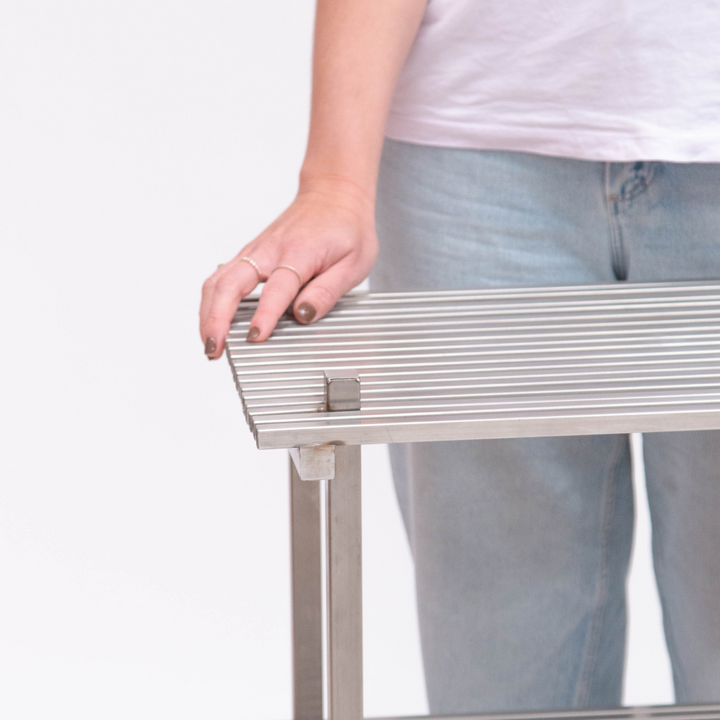 En Rootmate, creemos en el diseño que redefine. Presentamos nuestra Credenza "The Inox Shelf": la fusión perfecta de sofisticación industrial y funcionalidad. Sus líneas limpias y el brillo del inox la convierten en el acento perfecto para cualquier rincón, lista para lucir tus objetos más cool o crear composiciones impactantes, especialmente cuando varias se encuentran.