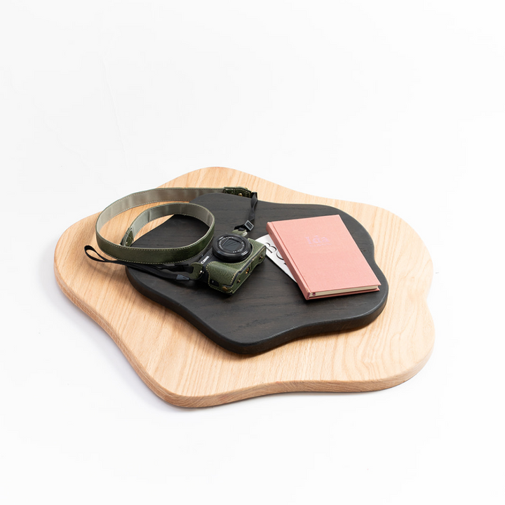 La Lazy Susan, una pieza giratoria, hecha de encino, que combina diseño funcional con estilo en 360º. Su forma orgánica y acabados únicos la hacen ideal para llevar orden y estética a cualquier rincón: la mesa, el tocador o donde quieras que las cosas fluyan sin esfuerzo.